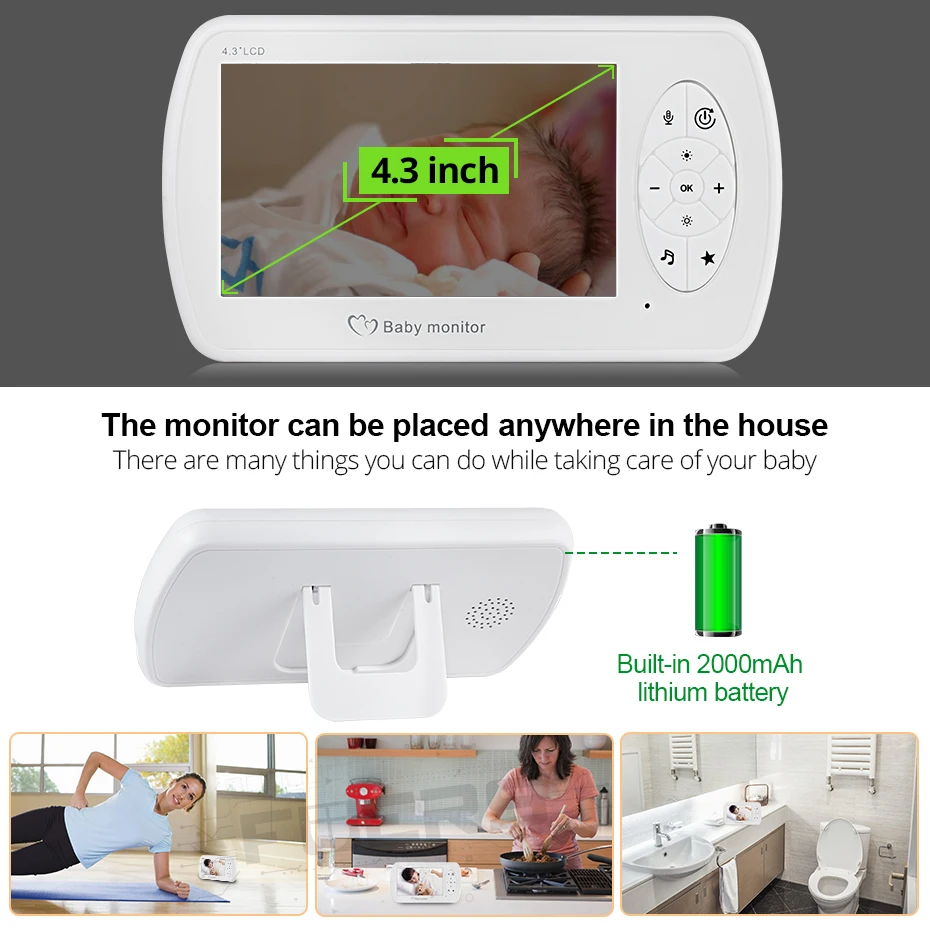 Promo 4.3 inch Wireless Video Color Baby Monitor High Resolution 1080P Baby Nanny Security Camera Tempera
