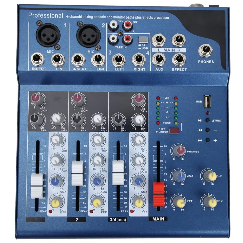 Home » best price , portable audio » Discount Mini Portable Audio Mixer w/ USB DJ Sound Mixing Console MP3 Jack 4 Channel Karaoke 48V Amplifier F