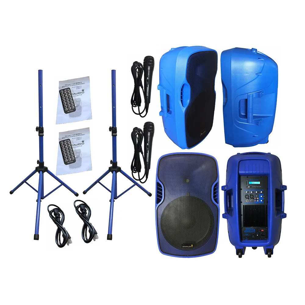 Get STARAUDIO 2X 3500W 15" PA DJ Active Powered Bluetooth Speakers System Audio Karaoke Speaker Stands