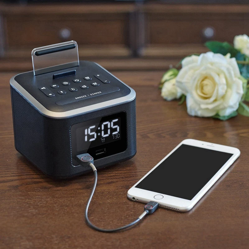 Free Shipping Wireless Bluetooth Audio Dual USB Mobile Phone Charging Base FM Alarm Clock Mini Audio