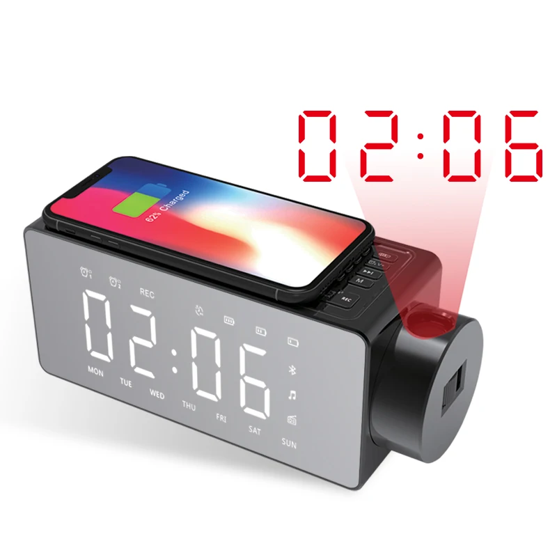 Discount Wireless Charger Bluetooth Speaker Super Bass 3D Stereo Speakers Support TF AUX mirror Projection A